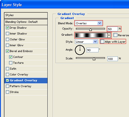 Click on Bevel and Emboss, and change the Gloss Contour to "Ring". This gives the object nice, shiny edges. If you don't do this, you'll end up with the normal bevel effect, which makes your object look like play-dough.